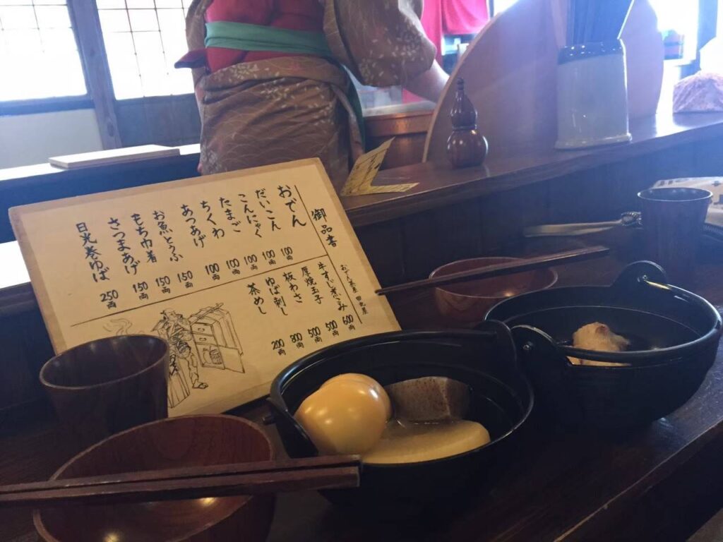 居酒屋や家で食べるおでんよりもおいしく感じるのは、江戸時代を完璧に再現している日光江戸村の雰囲気のせいでしょうか。