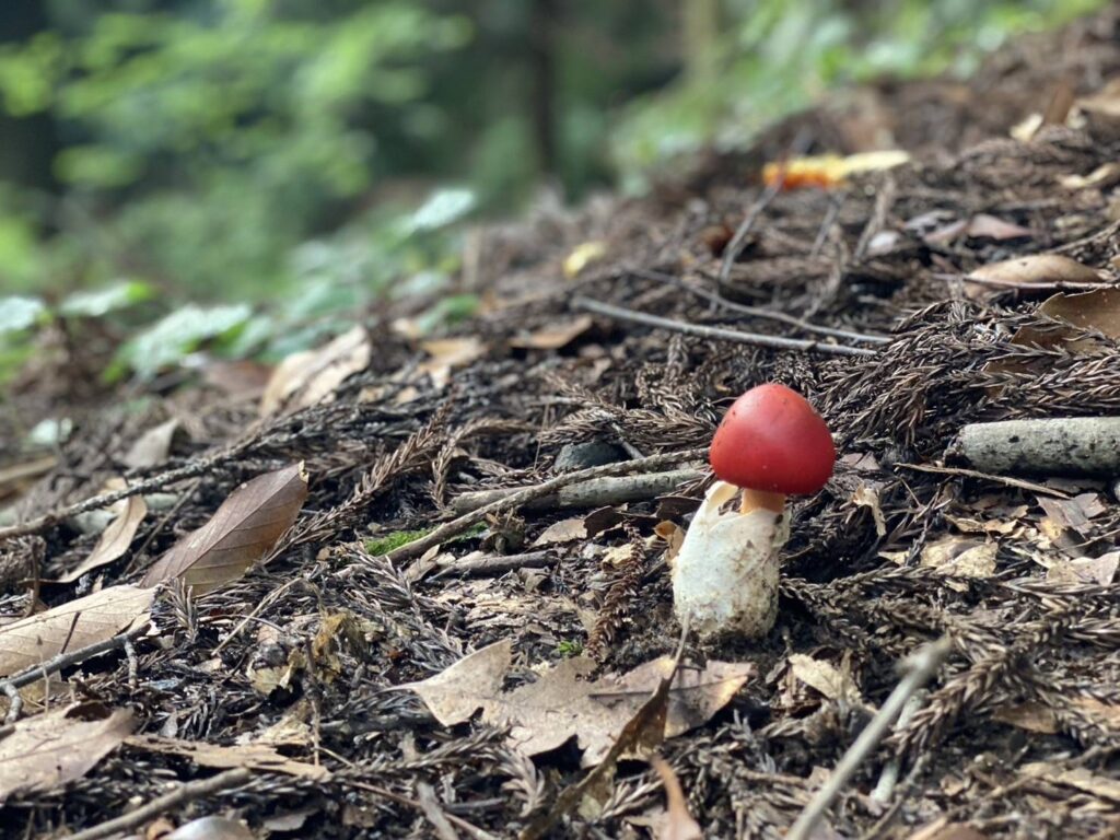 登山中に不思議なきのこ?と巨大な岩です。ロープウェイでいくとは見ることのできない植物や景色を見ることができました。