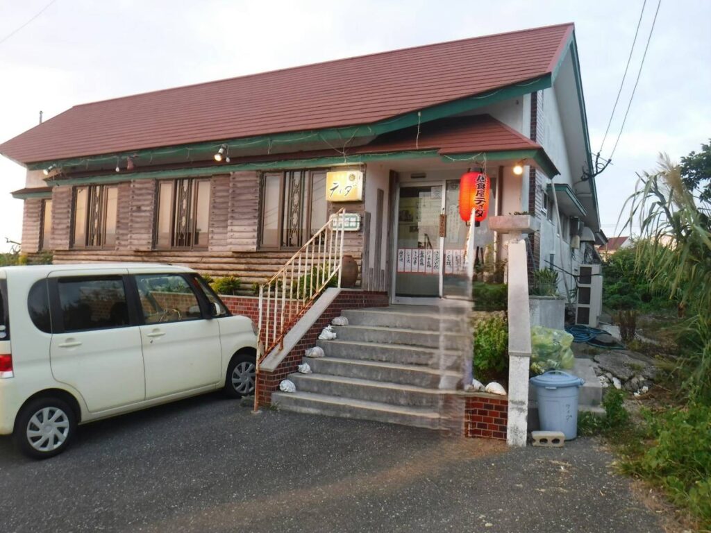 外観は、島のお店らしく、地元感あふれる建物。ティダの看板とちょうちんがあるので、迷わずに見つけることができると思います。
