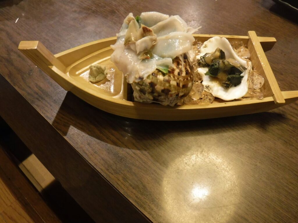 夜光貝のお刺身。とっても新鮮で、美味しかったです。さすが、島国!!