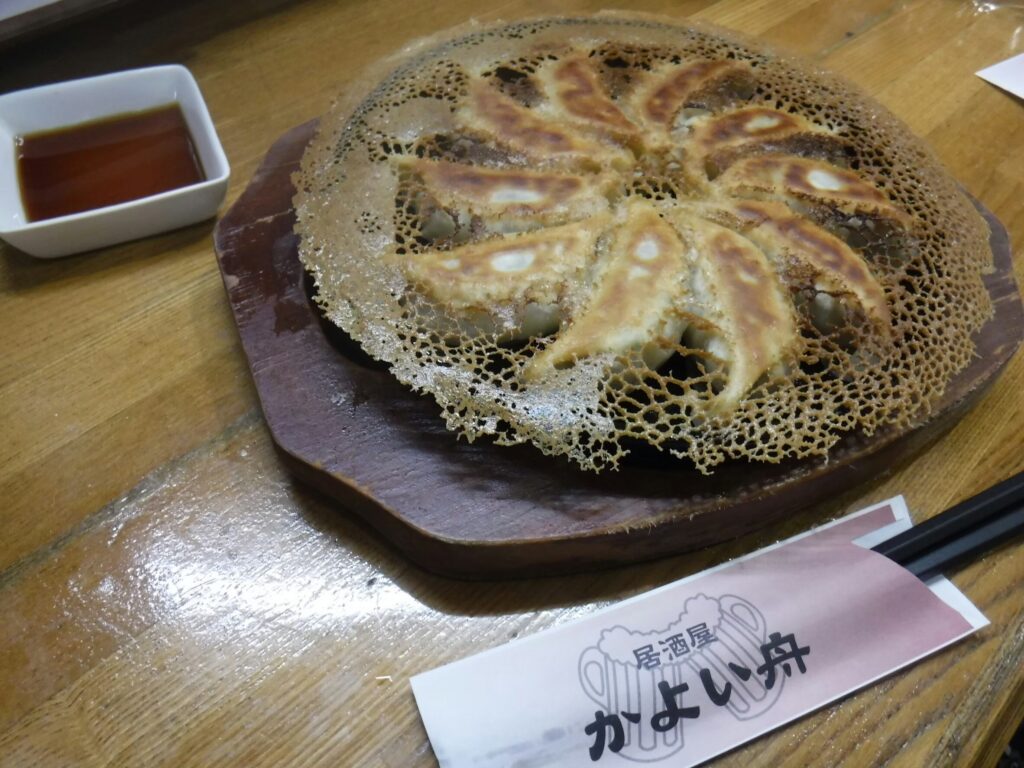 かよい舟の与論餃子は、島とうがらしのソースが結構はいっているのでピリ辛餃子。