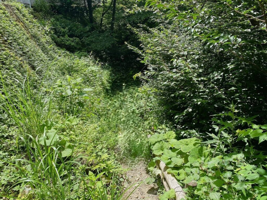 足元が悪い道を結構下の方まで降りていきます。サンダルでも問題なく、降りることができましたが、少し滑りそうなところもあったので、滑らないように、子供や高齢の方は、スニカーをはいていくとよいと思います。