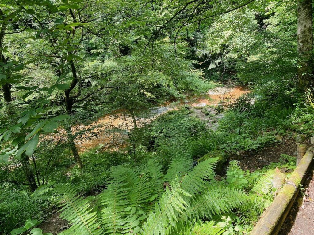 ここを下ると、大泉の滝に到着します!美しい四万ブルーを独り占めにすることができますよ!