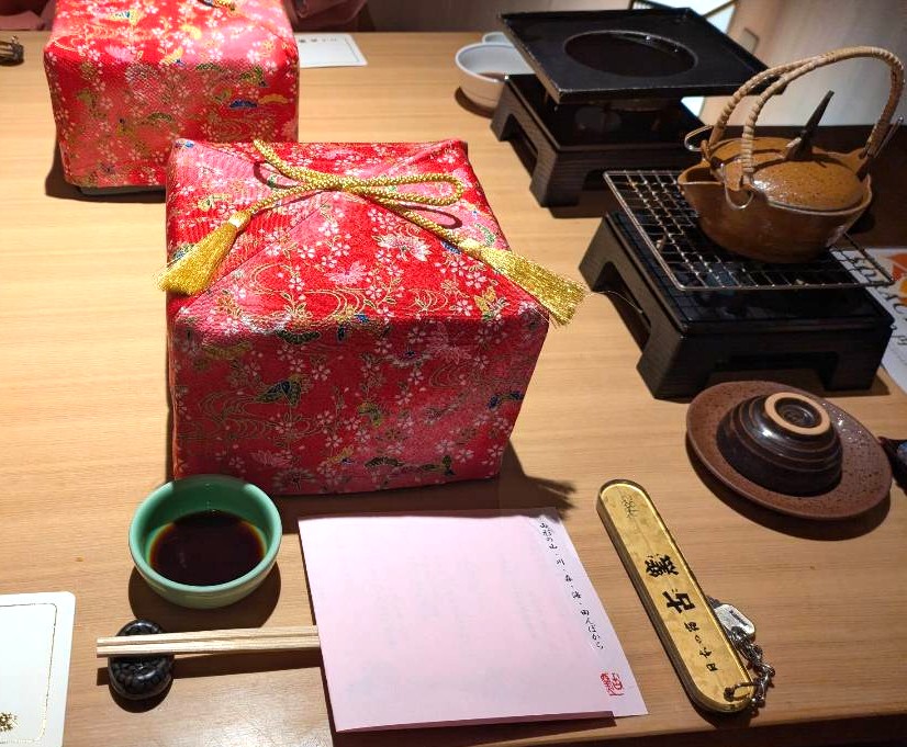 最初に運ばれてきたのは、玉手箱のようなお弁当箱。