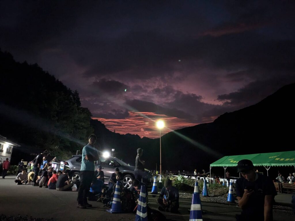 結構夜中から場所取りをしている人が多かったです。仙丈ケ岳の登山は、このシャトルバスに乗るまでが大変でした(笑)