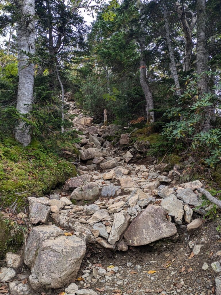 次第に道は険しくなり。。。岩の道を進んでいくことになります。