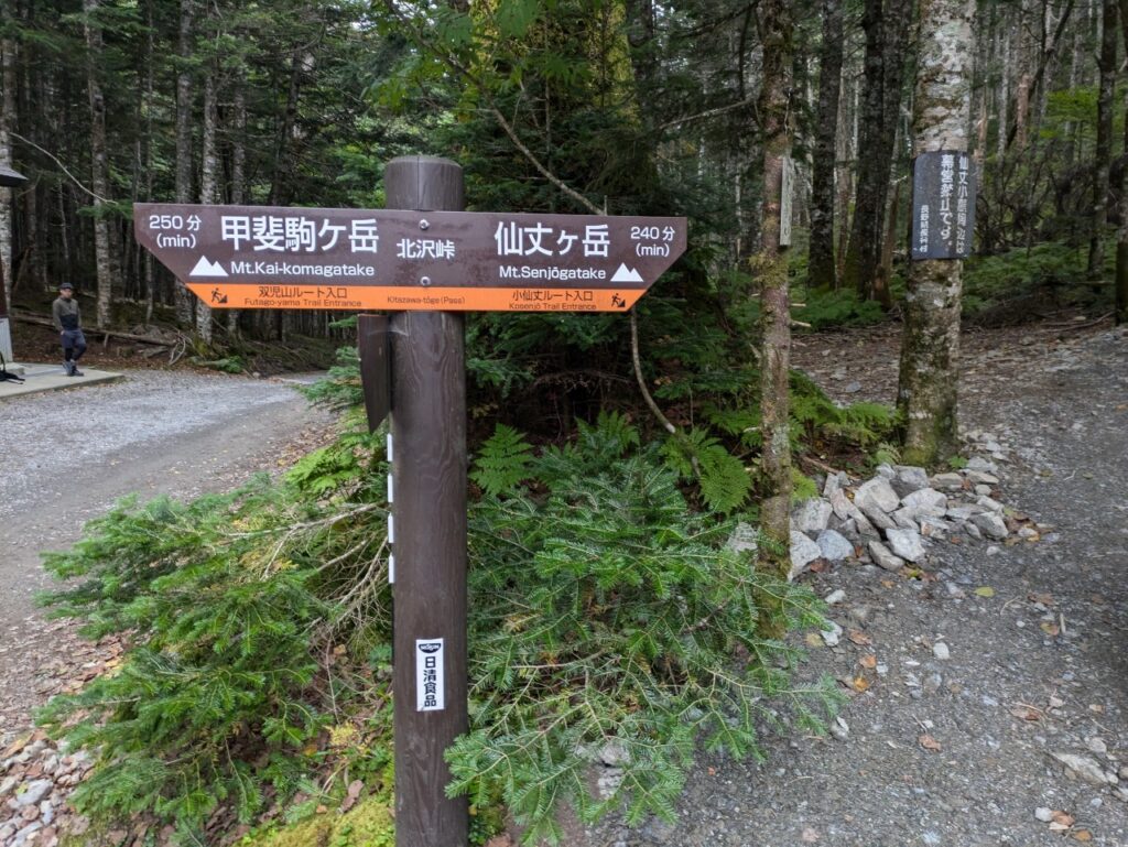 今回は、仙丈ケ岳登山なので、右側に進みました。よく思うんですが、この登山時間の目安・・・・。参考にならない。